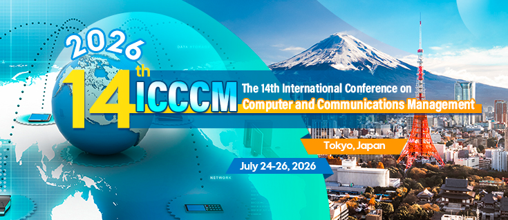 We are happy to announce that The 14th International Conference on Computer and Communications Management (ICCCM 2026) will be held in Tokyo, Japan during July 24-26, 2026. It is hosted by Shibaura Institute of Technology, Japan. Featured with keynote speeches, invited speeches, oral presentations, poster presentations and social networking event, ICCCM 2026 welcomes the participation of anyone who is interested in the related fields.